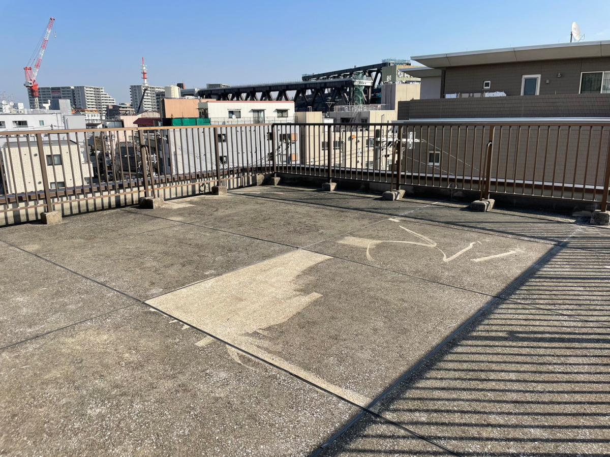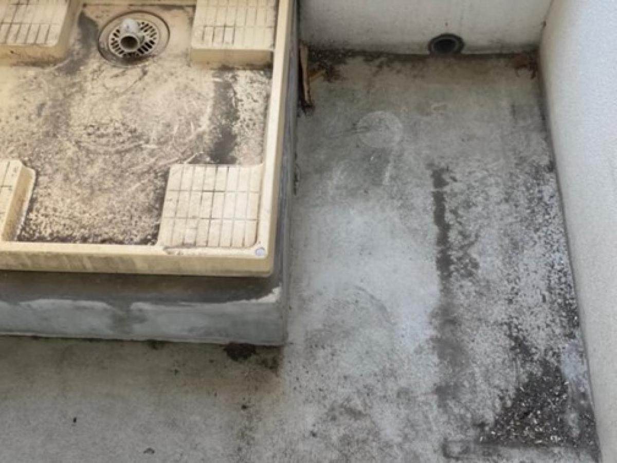 Before:5階室内の改装中に6階ルーフバルコニーより雨漏りを発見。オーナー様の『美観向上による入居率向上と防水層の保護を補いたい』とご希望で長尺シートで仕上げ