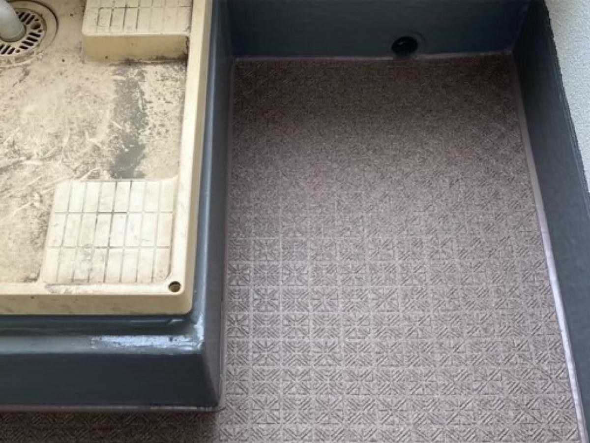 After: 外部にある洗濯機置き場も長尺シートによってお部屋と一体感を感じられる空間に
