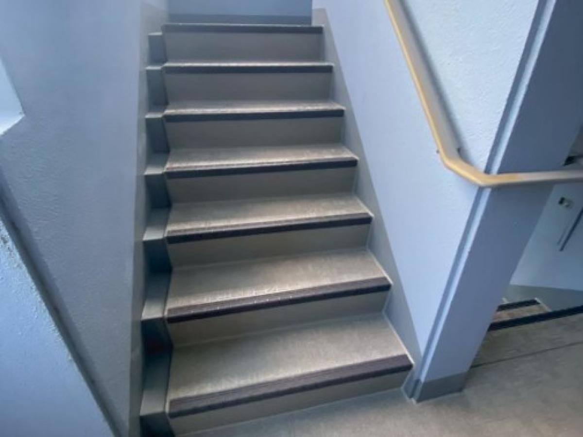 After: 下地防水+ノンスリップ付き長尺シートを施。