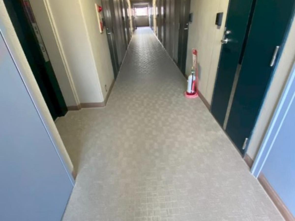 After: 防水層改修+長尺シート貼りで、明るく清潔感のある廊下に一新!